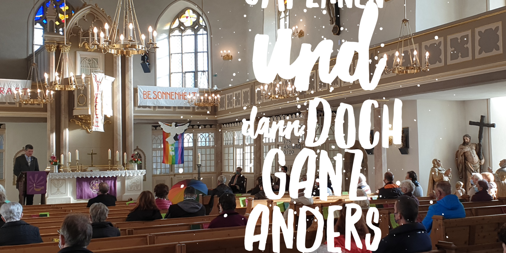 Es war alles sehr schön erdacht, zu seiner Zeit, im Frühsommer 2020, als wir in Stollberg mit dem Ökumenischen Weg die Frage erörterten, unter welchen Bedingungen und mit wem wir hier mit den Gemeinden der Stadtökumene Stollberg den Thementag feiern wollen. Eine Einladung der Gemeinden vor Ort und in die Region sollte es sein, mit Partnern, die auch hier zuhause sind. Mit Menschen, denen die Anliegen des Ökumenischen Weges am Herzen liegen, die sich finden und vielleicht auch wieder neu finden können in einer Region, die mit der Nähe zum Friedensseminar Königswalde, der Städte Chemnitz und Zwickau am Konzilliaren Prozess der 1980er Jahre nahe dran war, heute in dieser Beziehung eher im Schatten der Großstädte Sachsens liegt, in denen die Themen lauter kommuniziert werden. Auf jeden Fall ist die Wahrnehmung eine andere, sind Perspektiven der ländlich geprägten Regionen z.B. zum Umweltschutz durchaus eine andere als in den andersWachsen-Gemeinden der Städte. Spannend, darüber ins Gespräch zu kommen, Perspektiven kennenzulernen, Visionen zu teilen und mitzuteilen, gemeinsame Sprache, Gedanken, Wünsche und Hoffnungen entdecken.